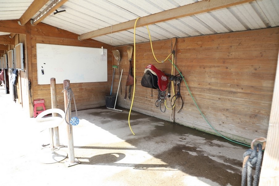 Bâtiment équestre de 144m² : 6 boxes, espace soins, sellerie indépendante, trois boxe supplémentaires. carrière 70x40m avec revêtement fibré